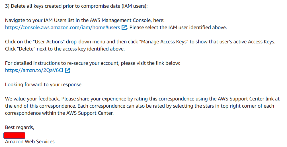 소스 코드에 적혀 있는 root key를 해커가 빼돌려서 EC2 instance를 생성한 것이었다.