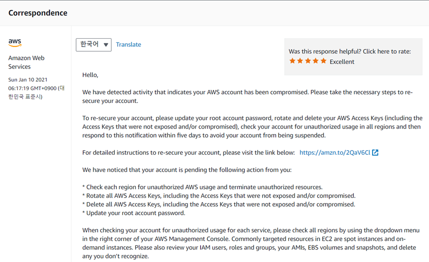 그런 AWS의 보안 장치와 나의 신속한 메일 확인 덕분에